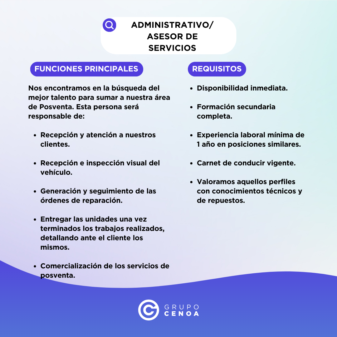 Administrativo / Asesor de Servicios Posventa - Jujuy